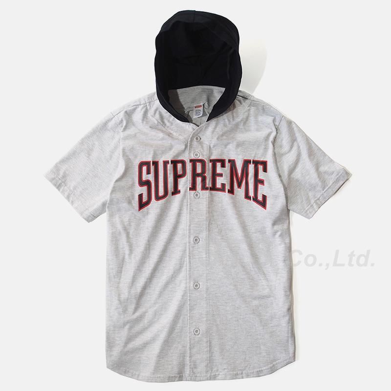 エバーラストロゴをフロントに大きく入れたフード付きのベースボールシャツ