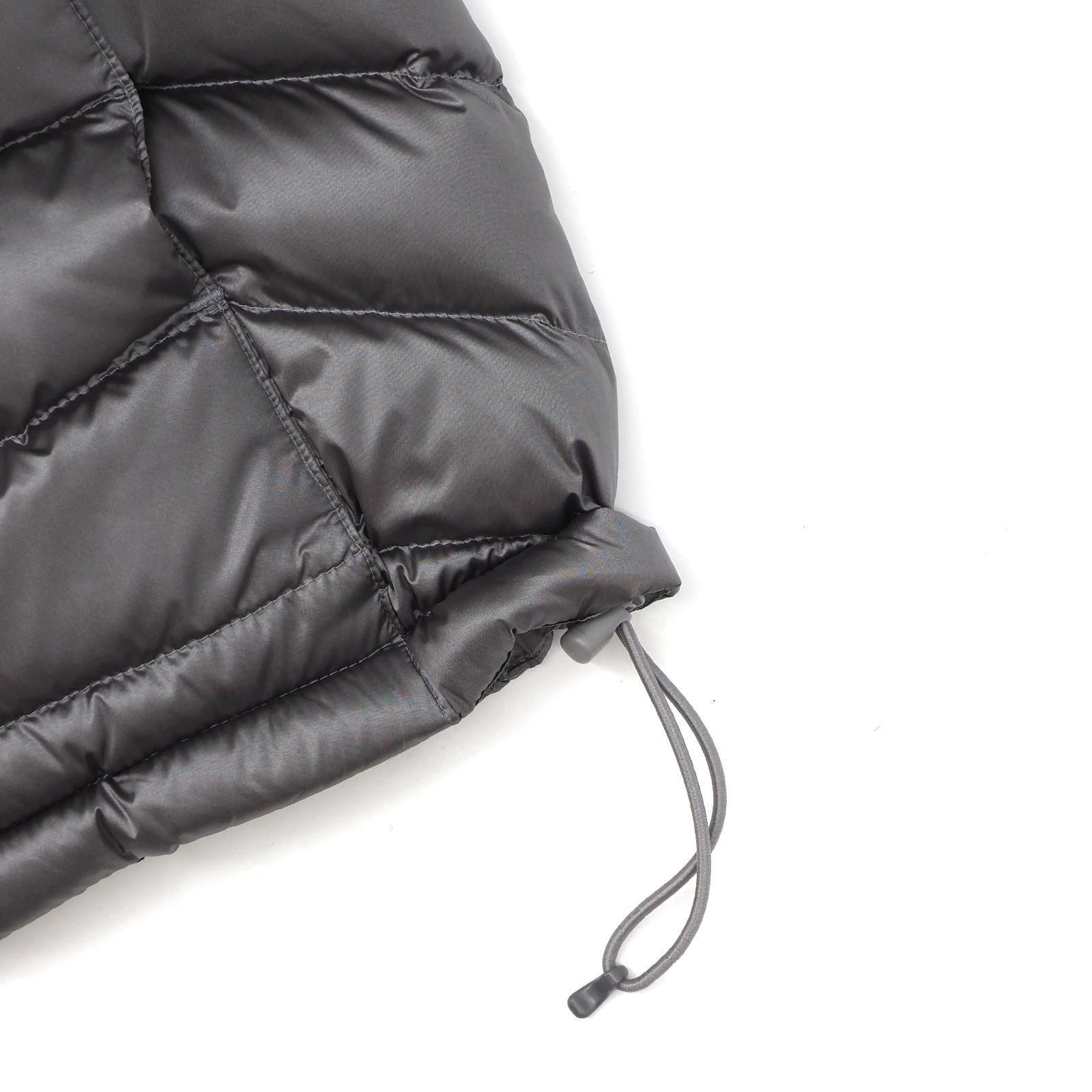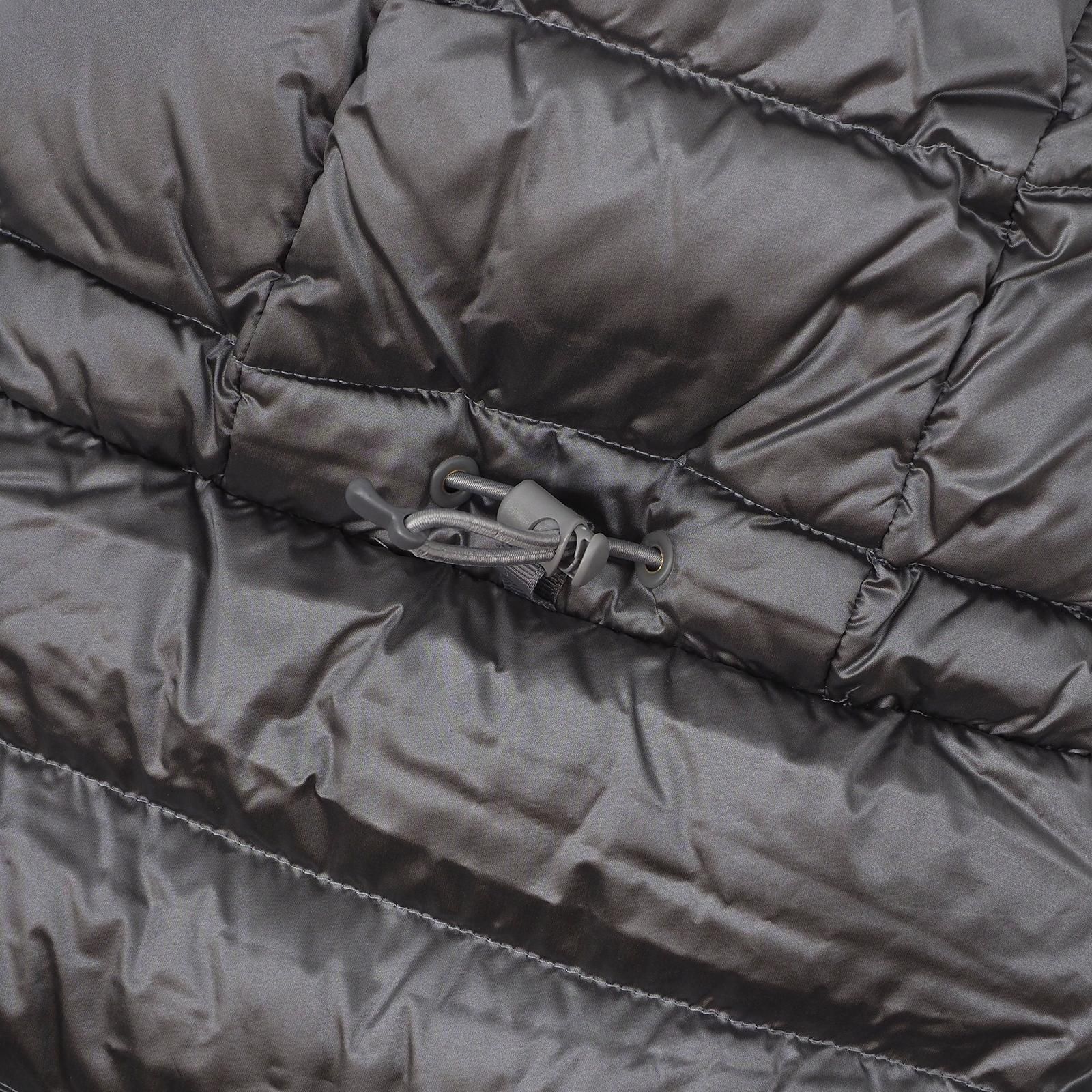 フードと裾の内側に伸縮性のあるショックコードが付いておりサイズ調整が可能です。袖口は伸縮性のあるバインディングが手首にフィットします。ボディー全体に入る細めのバッフルはデザインと中綿のズレ落ちを防ぐ働きを兼ねています