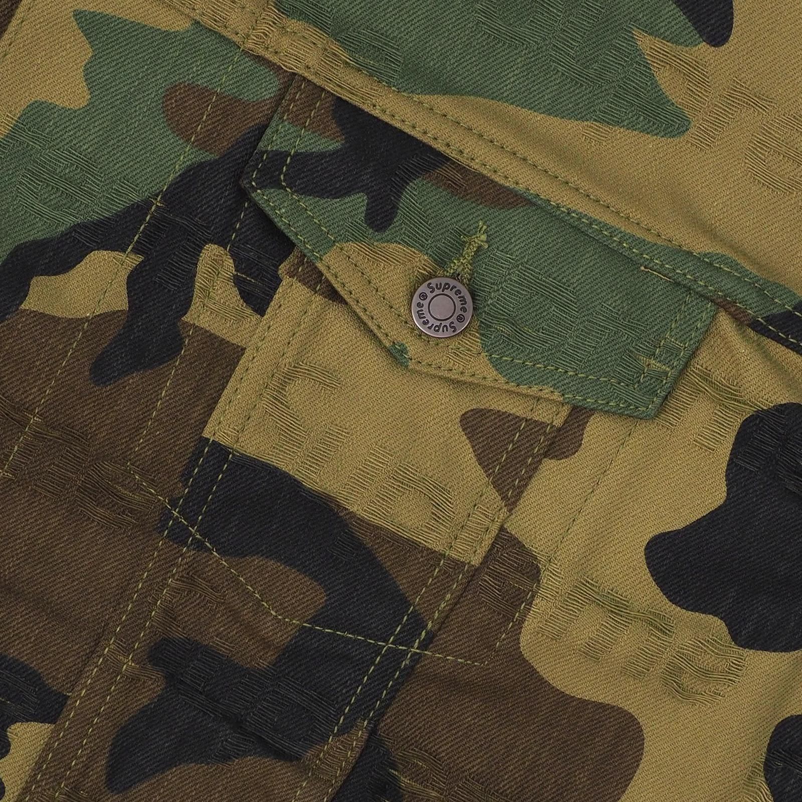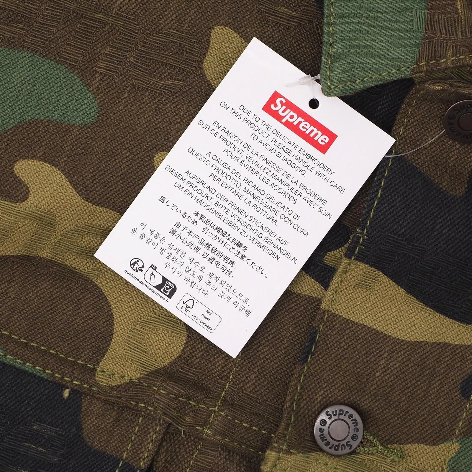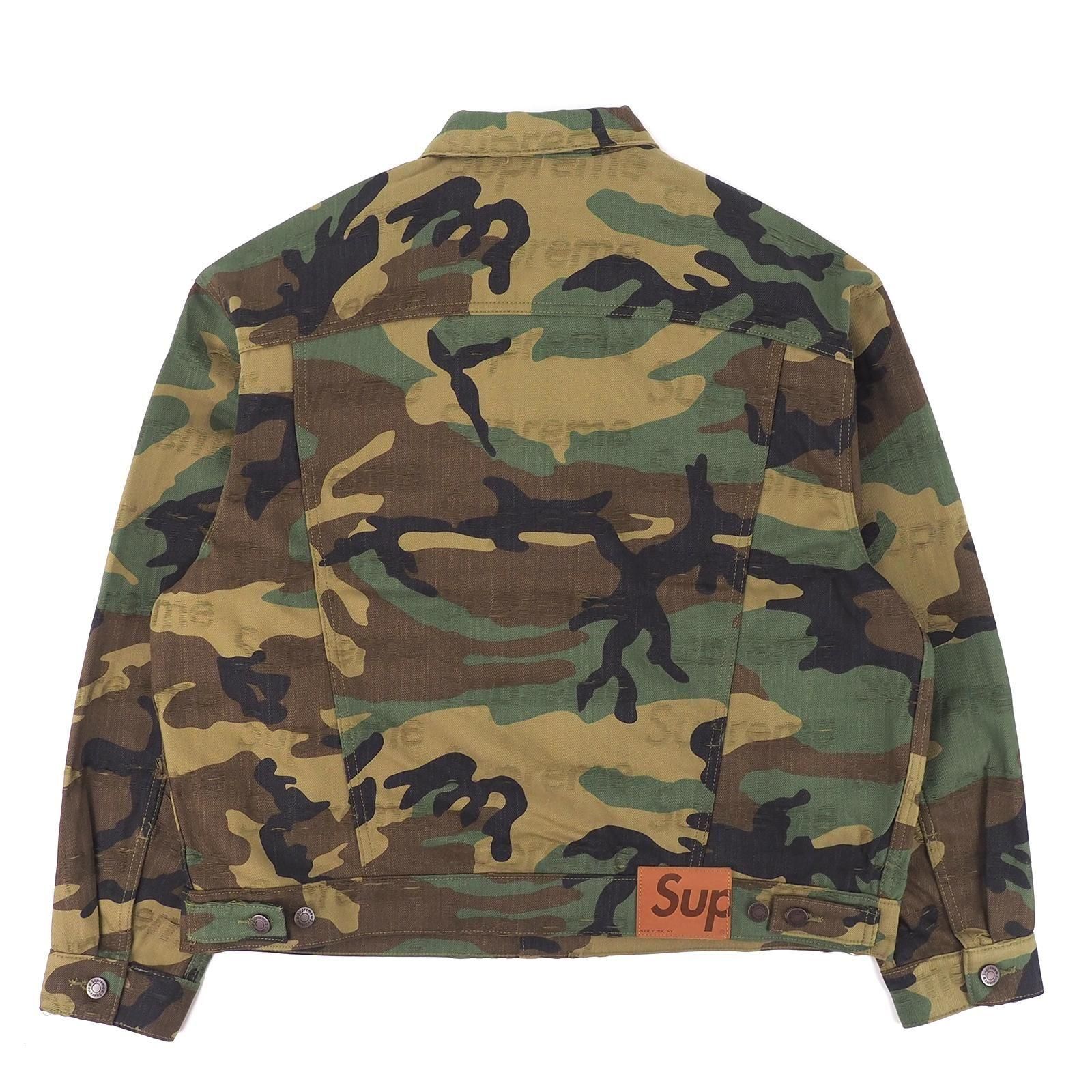14オンスのコットンデニムを採用し、フリンジ加工のジャカードロゴを全体に施した3rdタイプのデニムジャケットボタンフロント仕様で、胸にはフラップポケット、フロント下部にはシームポケットを配置袖口と裾のタブアジャスター、そして背面のレザーロゴパッチがディテールを引き立てます