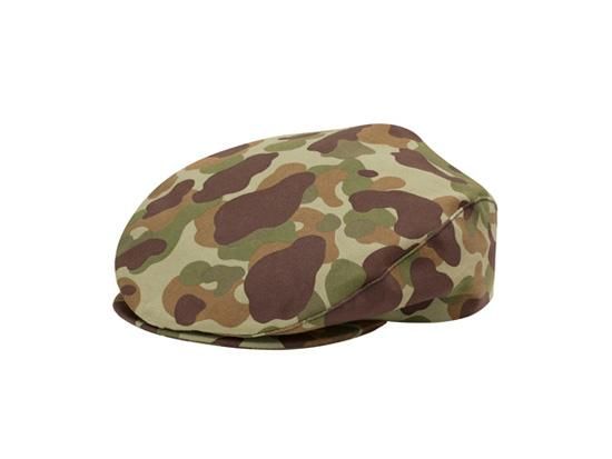 キャンバス生地にスイスカモのプリントを施したドライビングキャップ