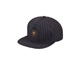 レザーパッチにエナメルのSロゴが貼られた5パネルキャップ